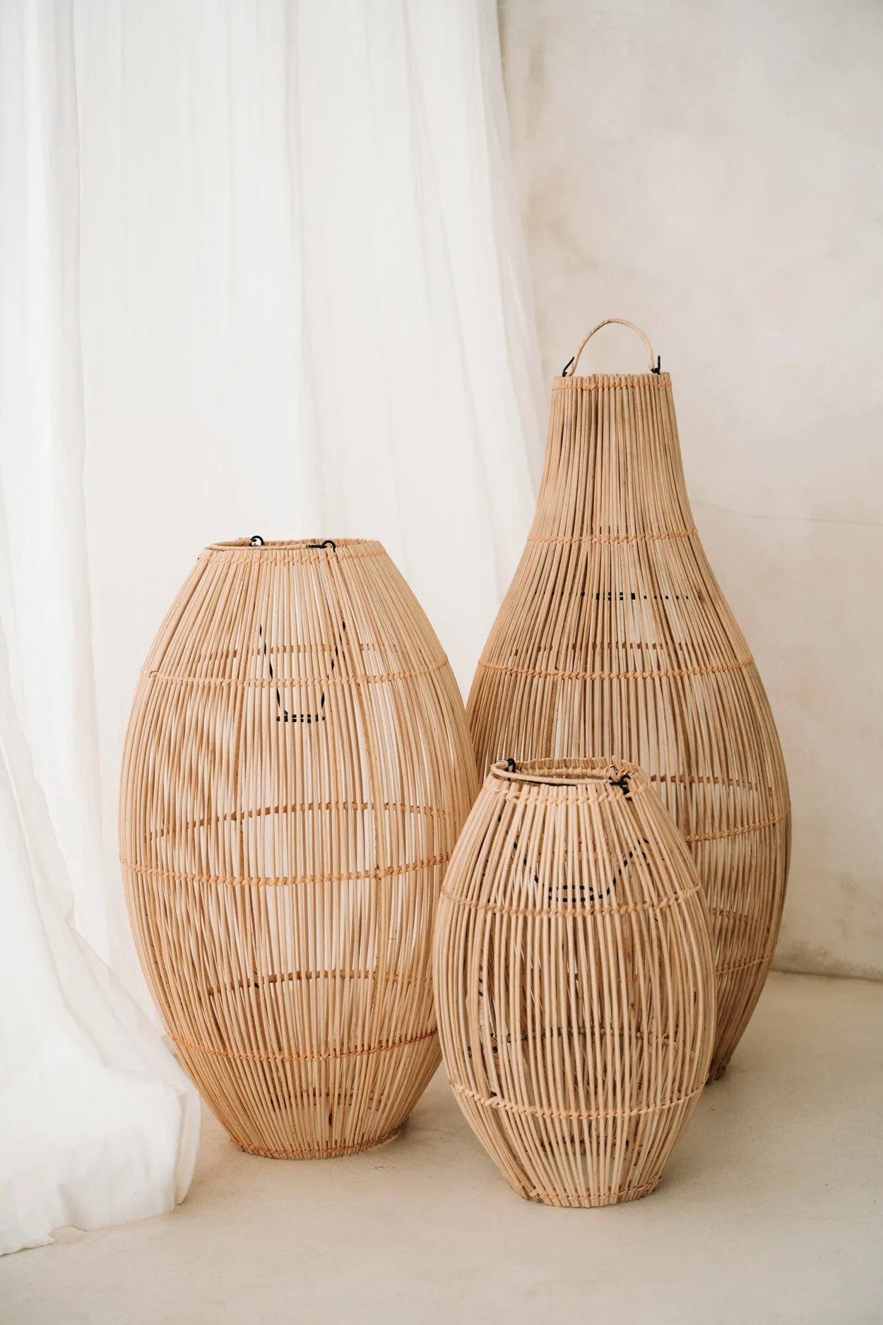Deze leuke klokvormige lamp kan worden gebruikt als hanglamp of als vloerlamp. Ze is verkrijgbaar in drie maten, zodat ze gemakkelijk kunnen worden gegroepeerd voor die extra wow-factor. Het ontwerp in rotan creëert gezellige strepen van licht door uw woonkamer, keuken of zelfs overdekte buitenruimte.Heeft u een andere kleur nodig? U kunt natuurlijk rotan eenvoudig in zwart spuiten, of in elke kleur die u maar wilt!