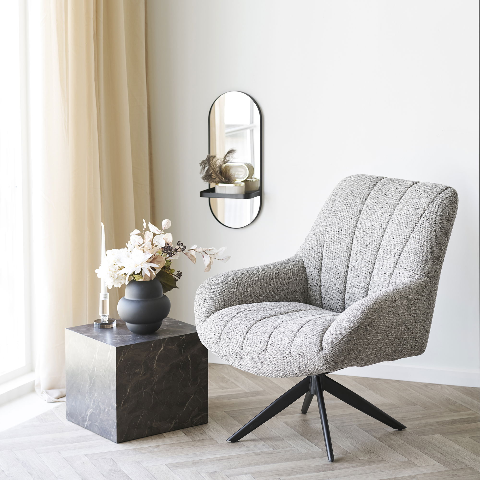 Mirror, metal shelf, steel, black, 25x12x60 cm