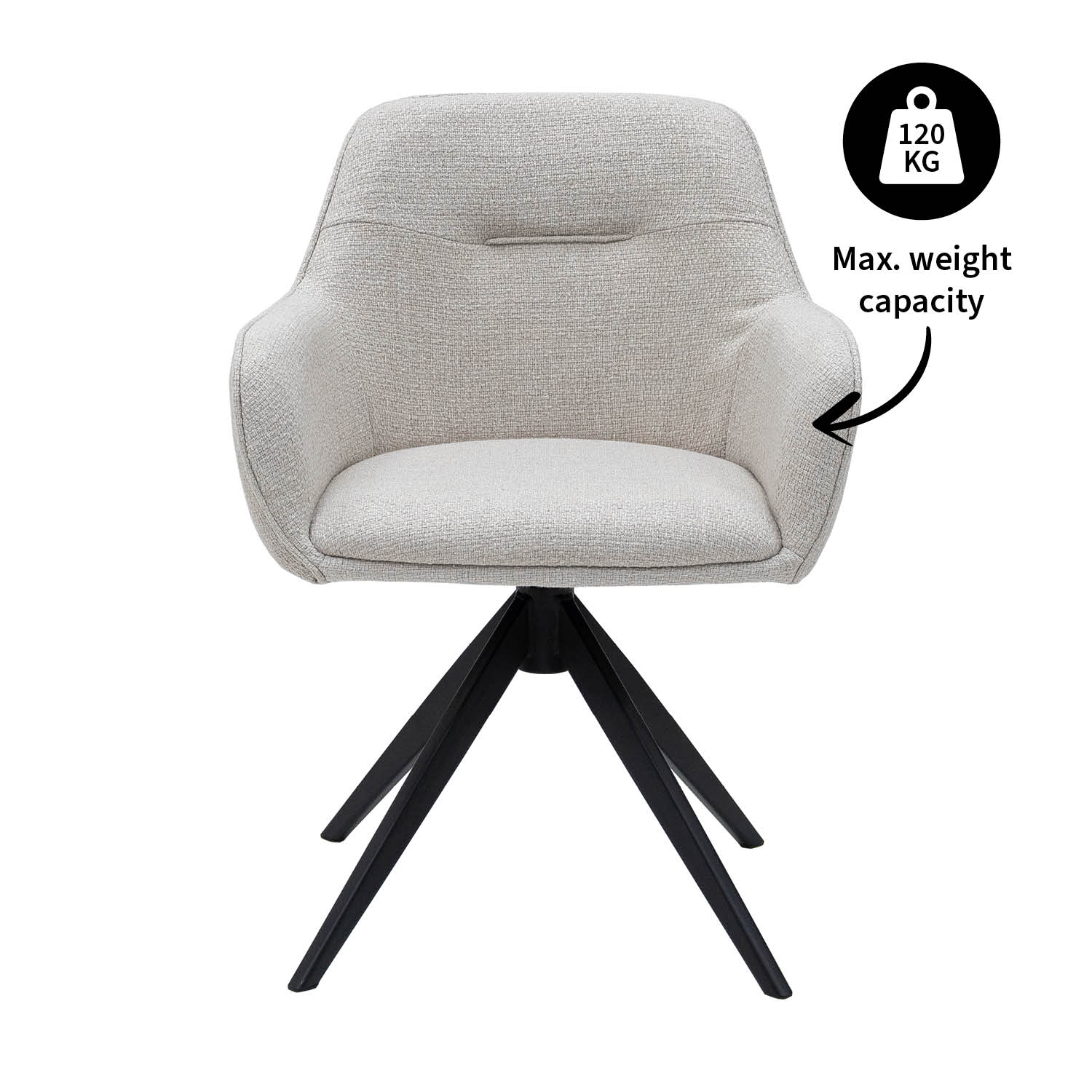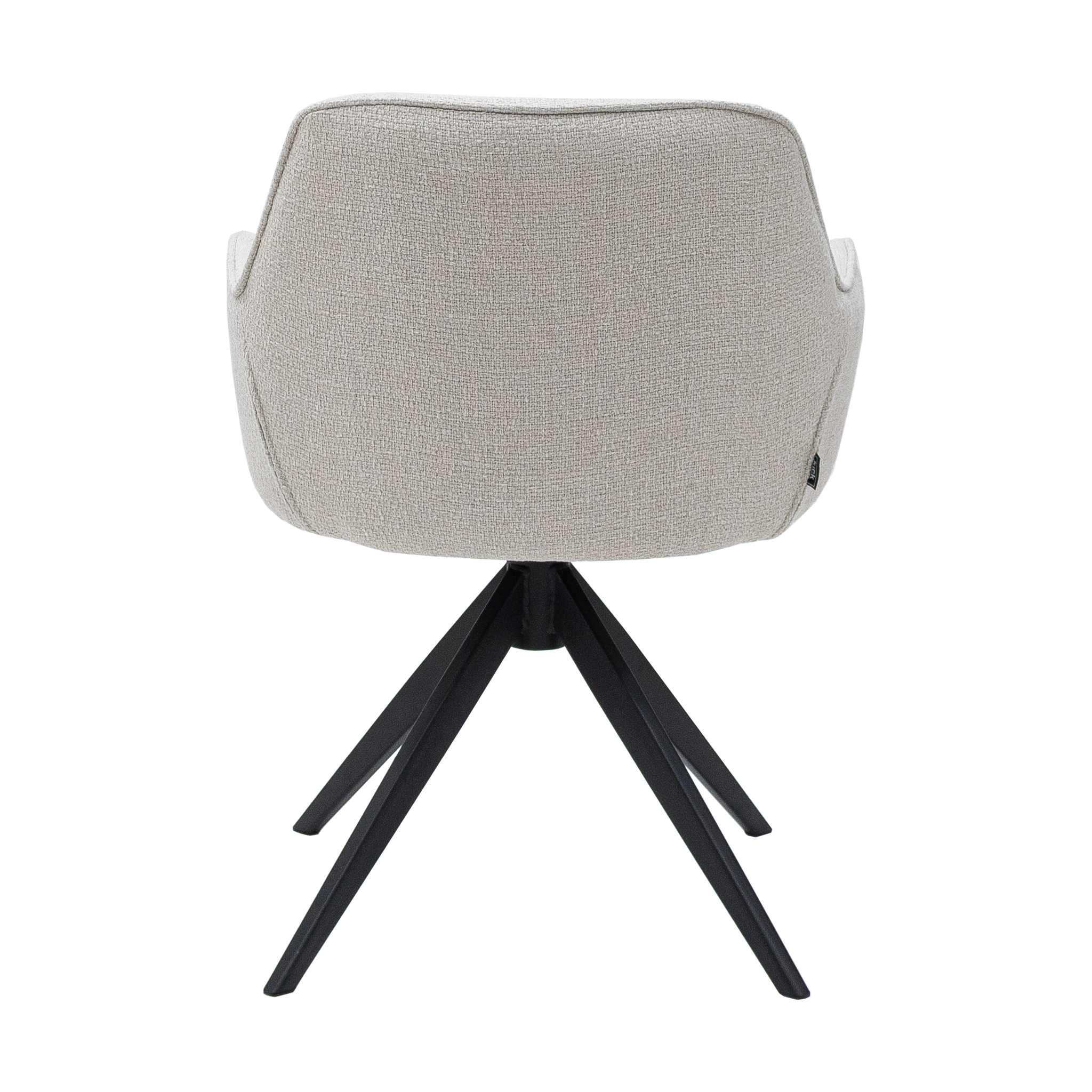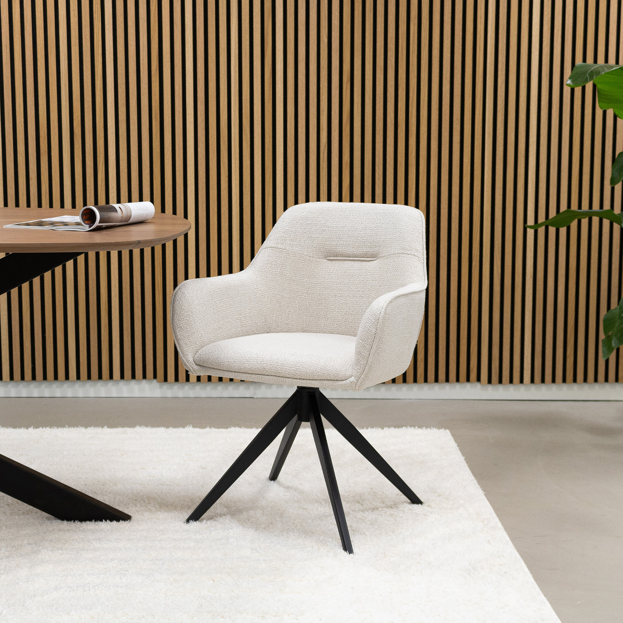 Meet Arne! Draaistoel Arne is met zijn tijdloze ontwerp en doordachte details een toevoeging in elk interieur. De zitting van deze stoel is gestoffeerd in onze vertrouwde grove texture stof dat rust op een modern 360-graden draaibaar frame. Het frame heeft een automatische terugdraaifunctie waardoor de stoel altijd weer terug komt te staan in de originele stand. Een leuk detail is het horizontale stiksel in de rugleuning van de zitting, dit maakt Arne echt uniek! Draaistoel Arne is verkrijgbaar in 4 kleuren waardoor je hem moeiteloos kunt afstemmen op jouw interieurstijl. Transformeer jouw eetruimte met Arne als het stralende middelpunt!