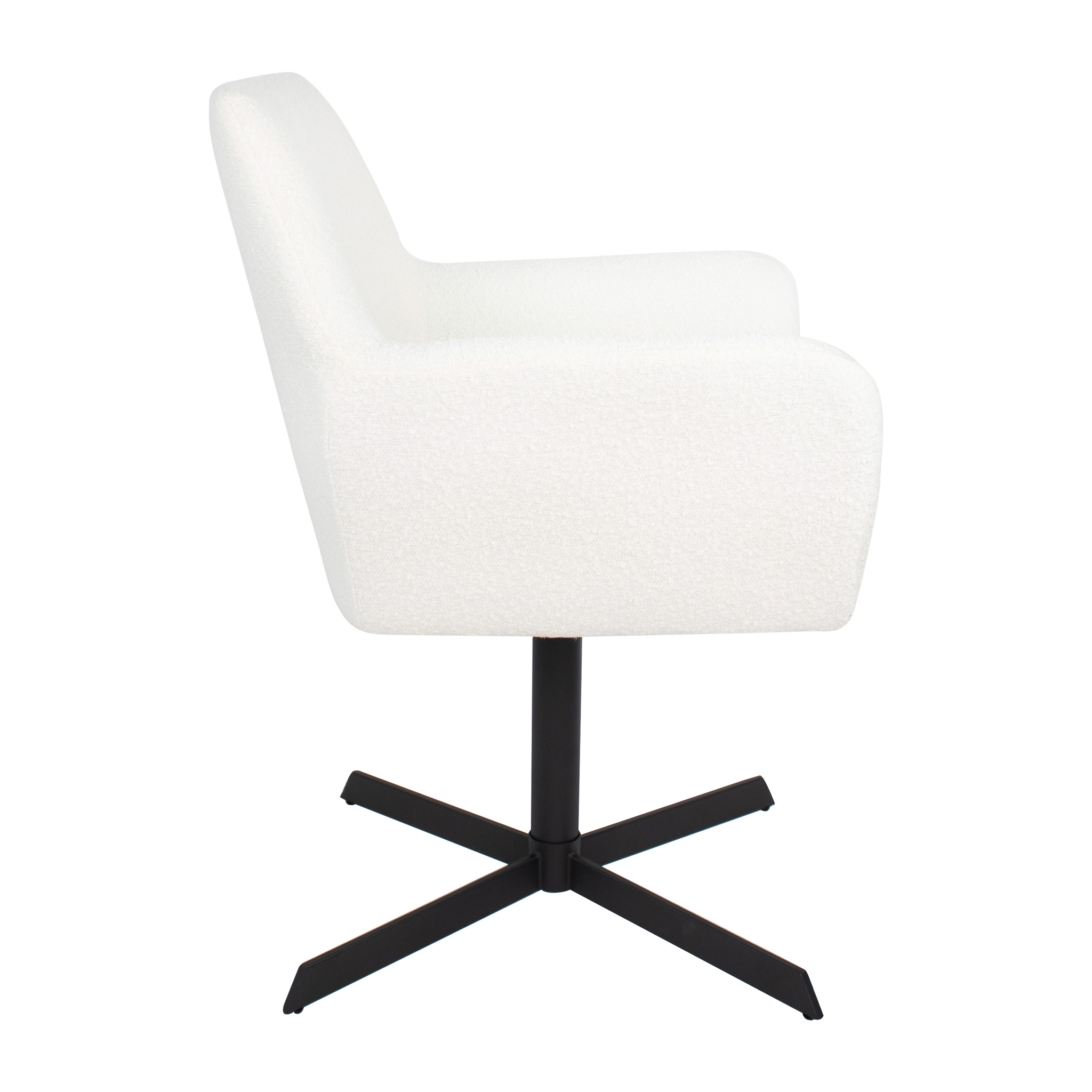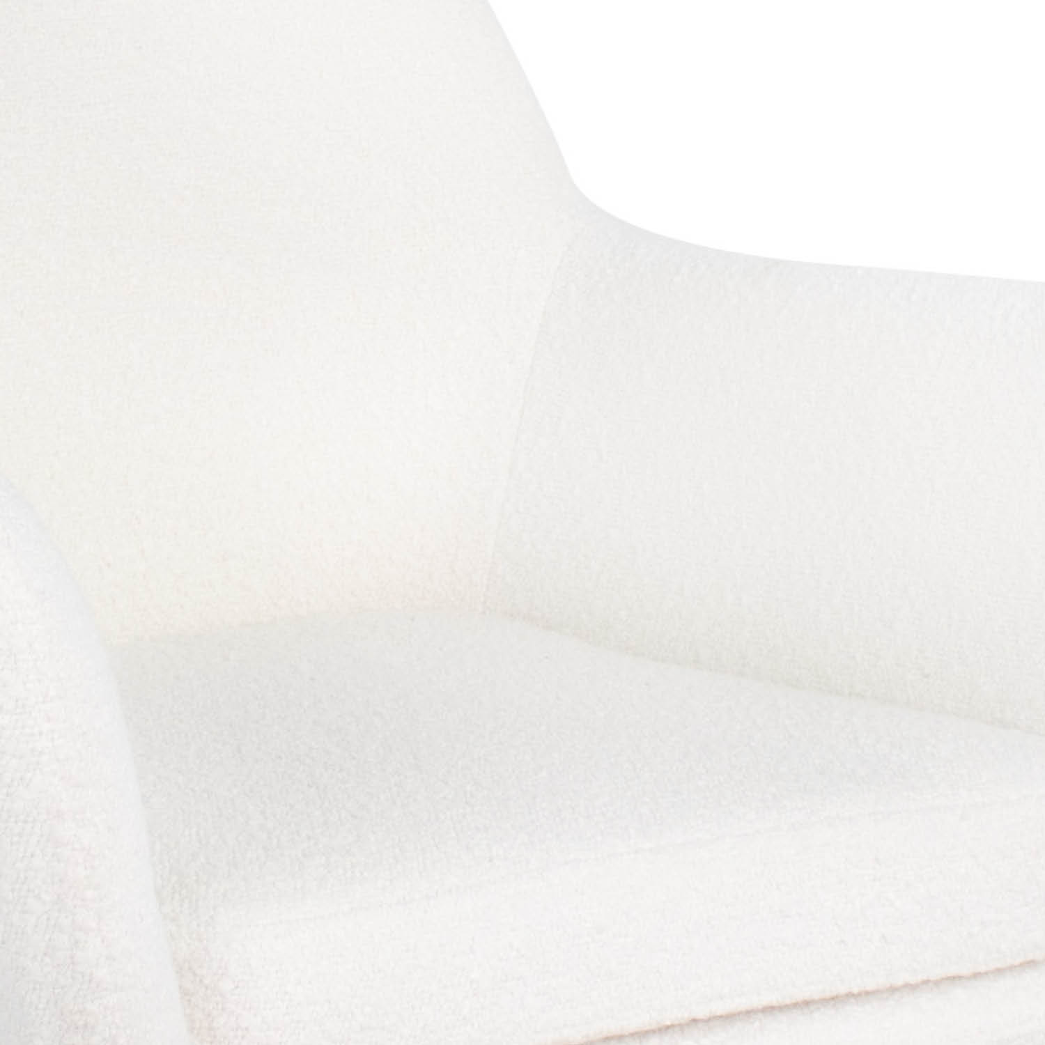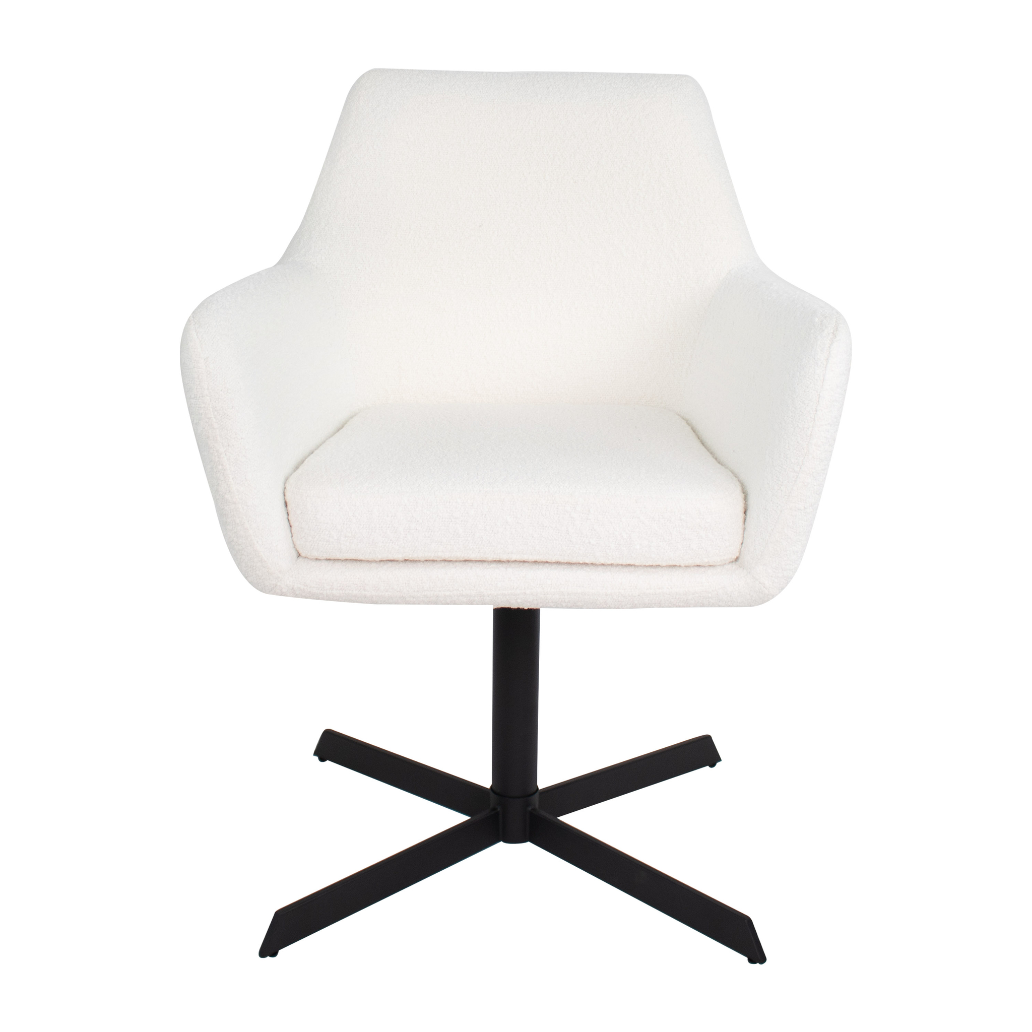 Viktor is gehuld in een zachte bouclé stof en verkrijgbaar in diverse kleuren. De stoel is voorzien van goed gepositioneerde armleuningen waardoor het zitcomfort optimaal wordt. Het opvallende metalen frame van de stoel is een staaltje van modern design en functionaliteit. Het frame is voorzien van een 360-graden draaimechanisme, waardoor je soepel kunt bewegen en gemakkelijk kunt aanschuiven aan de eettafel of een gesprek kunt voeren zonder de stoel te verschuiven.