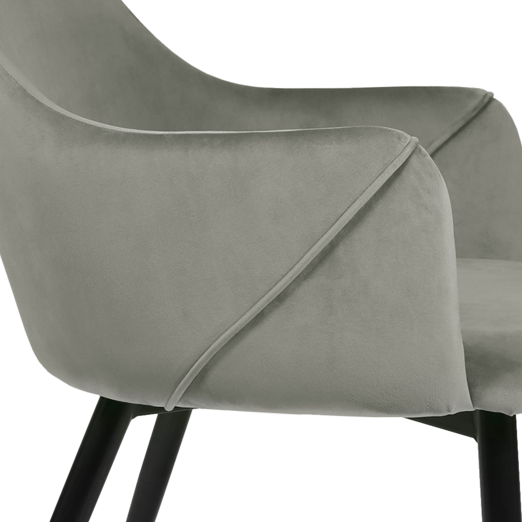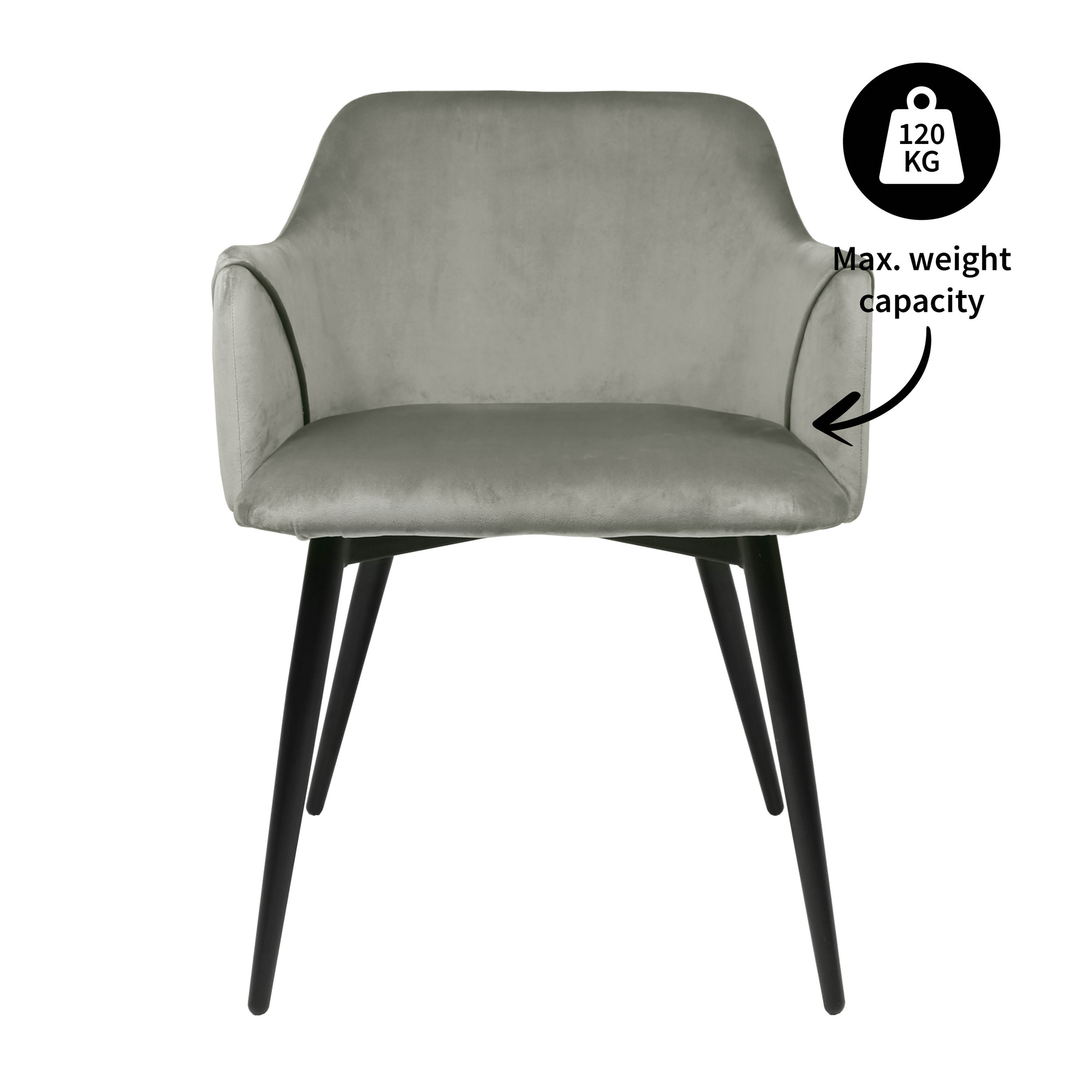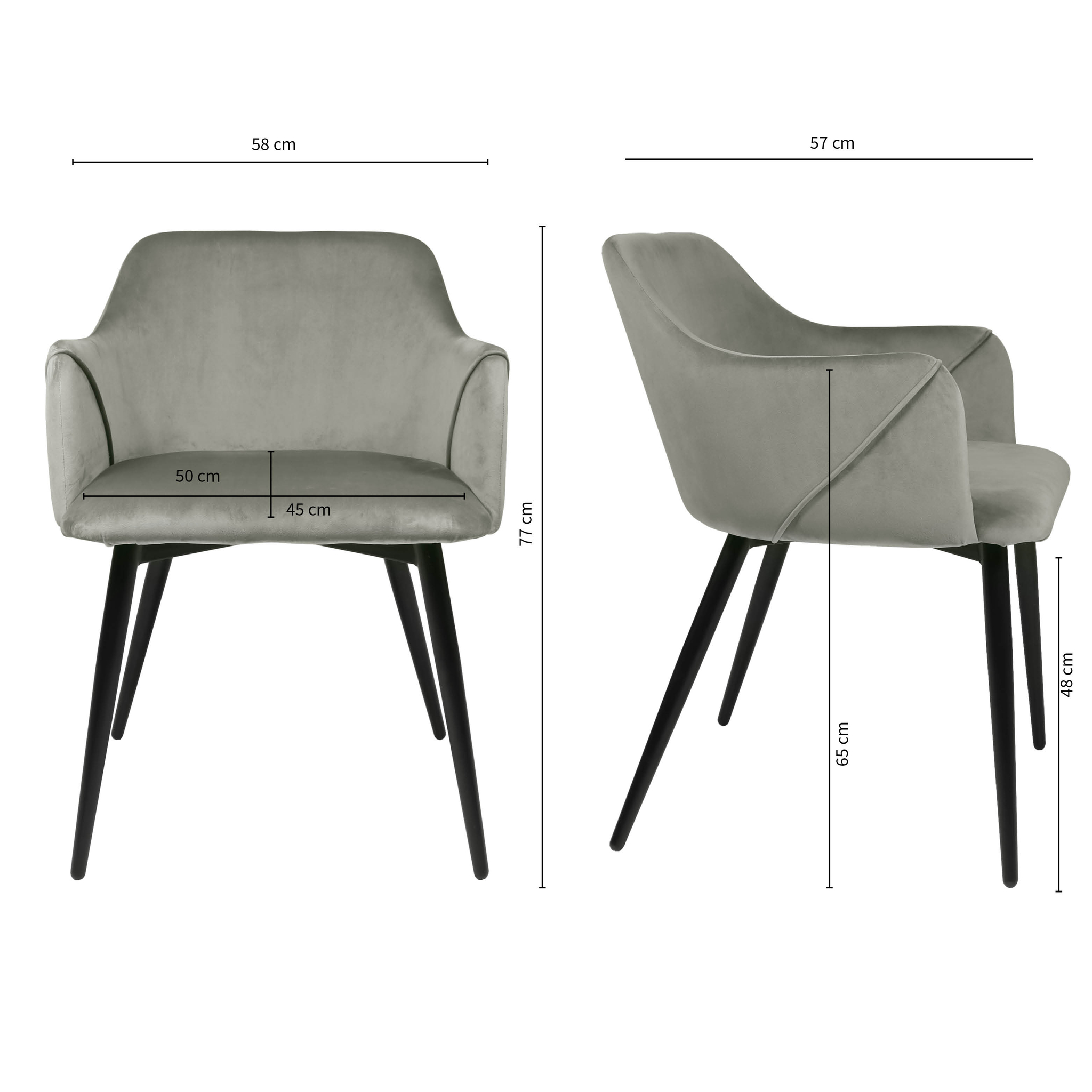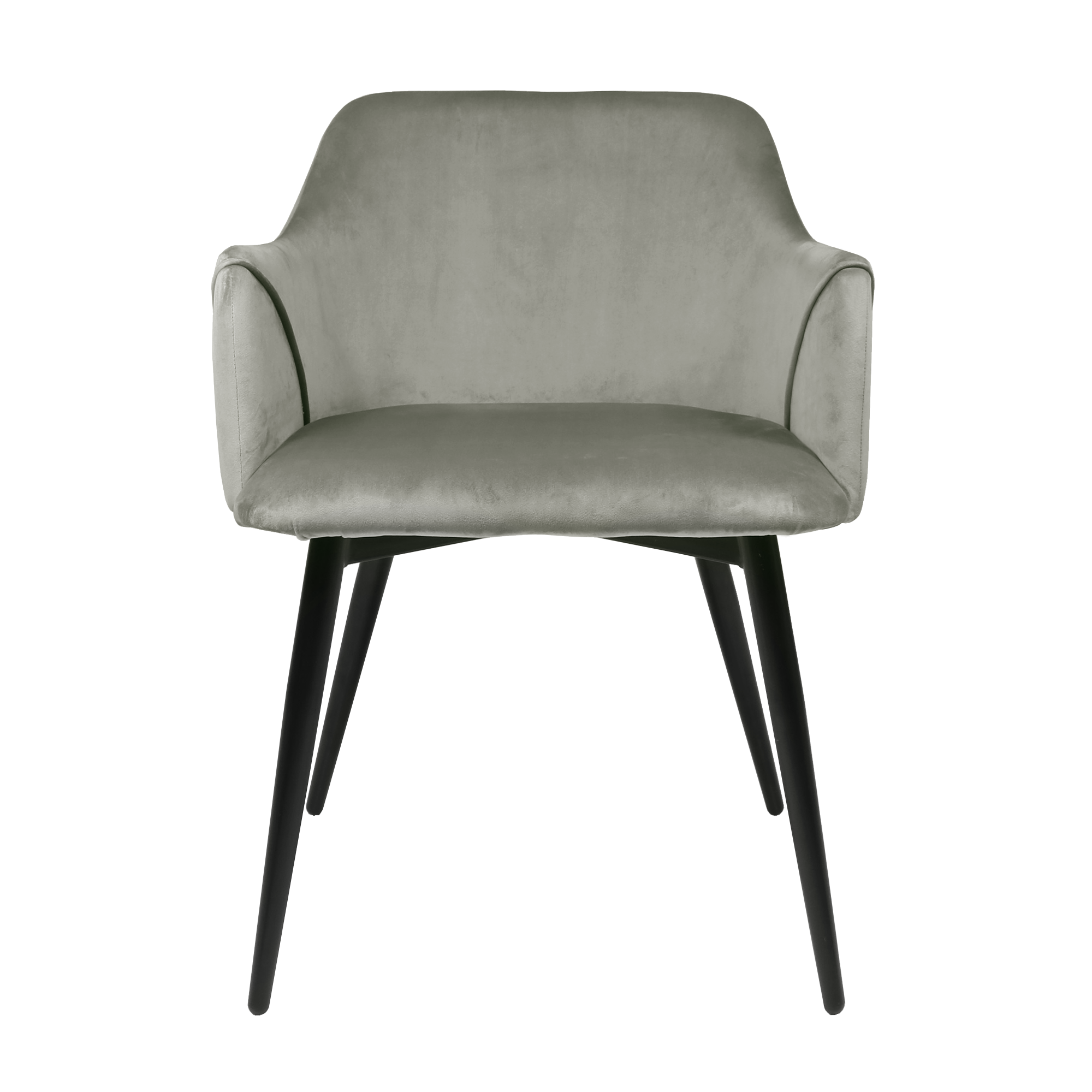 Hi I am Matz! Zie hier de velvet eetkamerstoel met armleuning van Kick. Uitermate geschikt voor lange avonden aan tafel. Deze eetkamerstoel kenmerkt zich door een subtiele bies in de velvet stof bij de armleuning. Helemaal Kick! Het metalen frame is voozien van een zwarte coating. Nu verkrijgbaar in diverse kleuren.