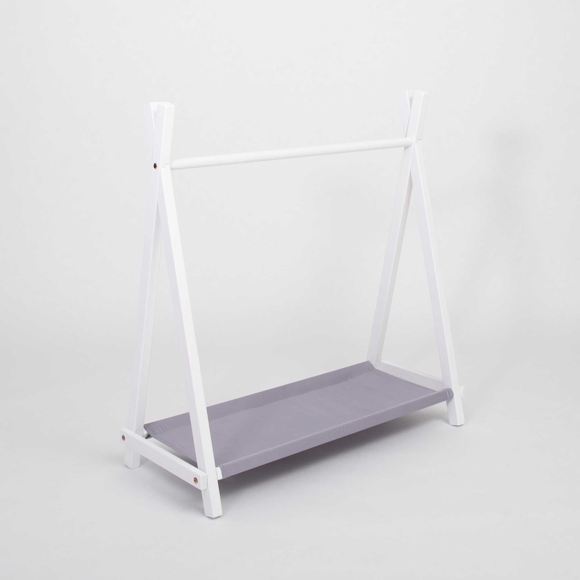 Clothing rack made from solid pine wood painted white (grey fabric color)